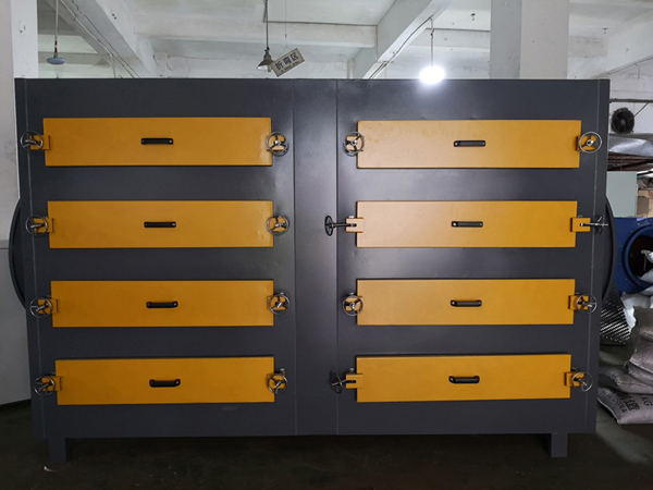 3、對于大風(fēng)量、低濃度的有機(jī)廢氣處理,活性炭一般采用較大的排列面積和較低的床層厚度,以獲得較大的氣體流通截面、較小的風(fēng)阻和合適的吸附容量。